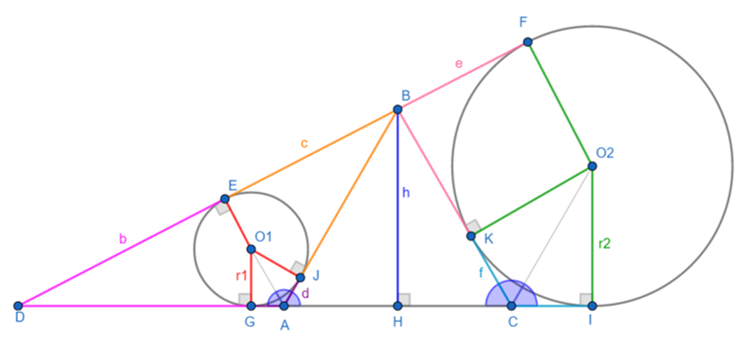 In the same way, AG=d=r1/sqrt(3) and CI=f=r2/sqrt(3)